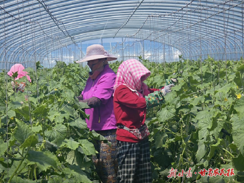 凉州区怀安镇驿城村的大棚里一株株藤蔓上挂满了鲜嫩的小乳瓜。