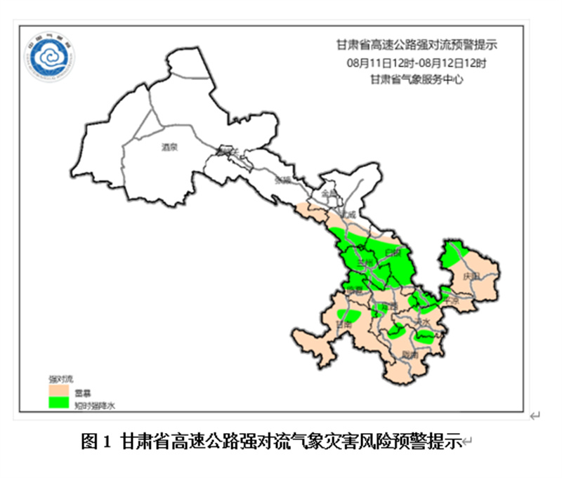 预计未来24小时,武威以东部分地方有雷暴;其中S34双达高速、S32临大高速、S14陇渭高速、S46通定高速、G6京藏高速(刘寨柯至兰州段)、G2012定武高速、G1816乌玛高速(景泰至中川机场段、临夏至合作段、康家崖至临夏段)、G30连霍高速(柳沟河至树屏段)、G22青兰高速(四十里铺至崆峒山段)、G75兰海高速(兰州至渭源段、武都至罐子沟段)、G69银百高速(甜水堡至曲子)、S13尹中高速、G2201南绕城等高速;有较大影响的路段有:G30连霍高速(柳沟河至定西段)、S60西会高速(西吉至会宁段)、S38王夏高速、G1816乌玛高速(临夏至合作段)局部路段将有短时强降水,并伴有8-10级雷雨大风或冰雹,最大小时雨强可达15-35毫米,强降水主要时段为11日12时-12日08时。请注意防范!