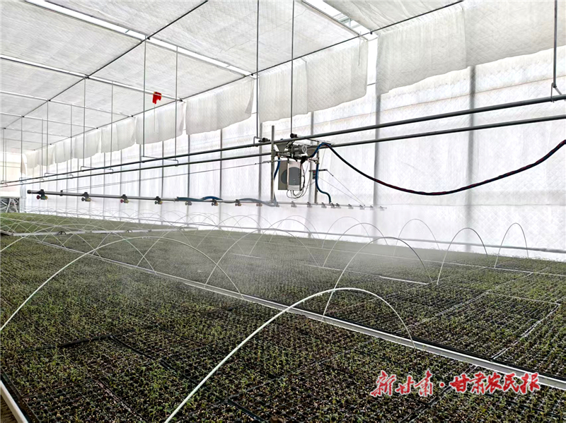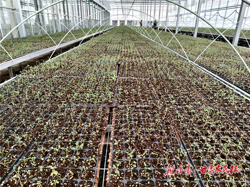 近日,民勤县重兴镇上案村育苗中心内一派繁忙景象。明亮的玻璃温棚中,工人们动作娴熟,填基质、点穴盘,各项工作有条不紊。目前,该中心已成功完成首批育苗任务。