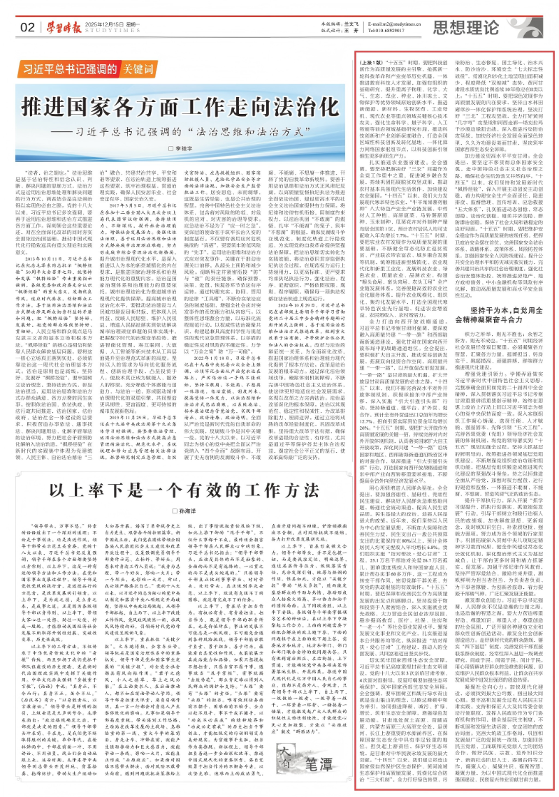 充分认识发展成就强信心。“十四五”以来,在以习近平同志为核心的党中央坚强领导下,我国经济社会发展取得新的重大成就,“十四五”即将实现胜利收官。同全国一样,甘肃各项事业发展取得历史性成就,预计地区生产总值增速连续16个季度高于全国平均水平,经济总量连跨4个千亿元台阶,人均地区生产总值累计增长36.1%。这些成就的取得,根本在于以习近平同志为核心的党中央领航掌舵,在于习近平新时代中国特色社会主义思想科学指引。“十五五”时期,我们要乘势而进、接续奋斗,着力锻长板、固底板、补短板,推动甘肃现代化建设不断取得新成就。
