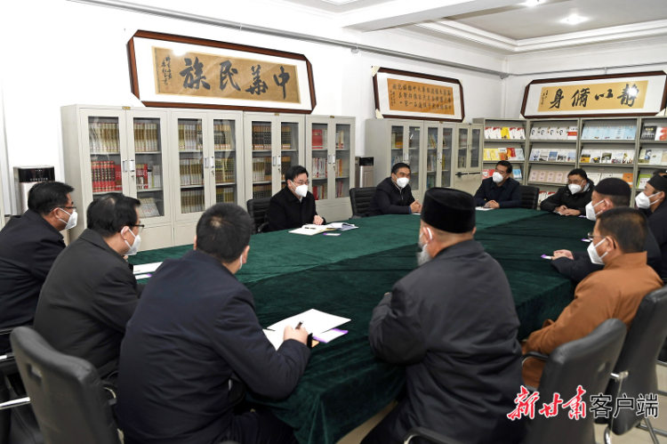 在临夏市清真城角寺,胡昌升调研民族宗教工作,同宗教界代表人士座谈交流。他强调,要学深悟透习近平总书记在中央民族工作会议、全国宗教工作会议上的重要讲话精神,以铸牢中华民族共同体意识为主线,引导各族群众牢固树立“四个与共”共同体理念,不断增进“五个认同”,做民族团结的坚定维护者、践行者、执行者,持续促进各族群众交往交流交融。要坚持我国宗教中国化方向,提高宗教事务治理法治化水平,深化“党亲国好法大”教育实践活动,推动民族宗教工作与党委政府中心工作同心同向,团结一致、共同奋斗,加快民族地区繁荣发展。