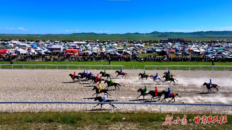 赛场上,骑手们驾驭骏马风驰电掣。玛曲县融媒体中心供图