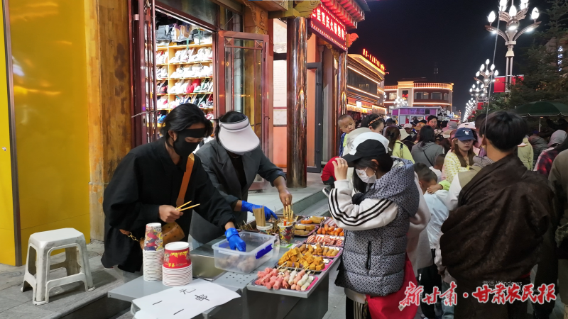 夜幕中县城街道上人头攒动。玛曲县融媒体中心供图