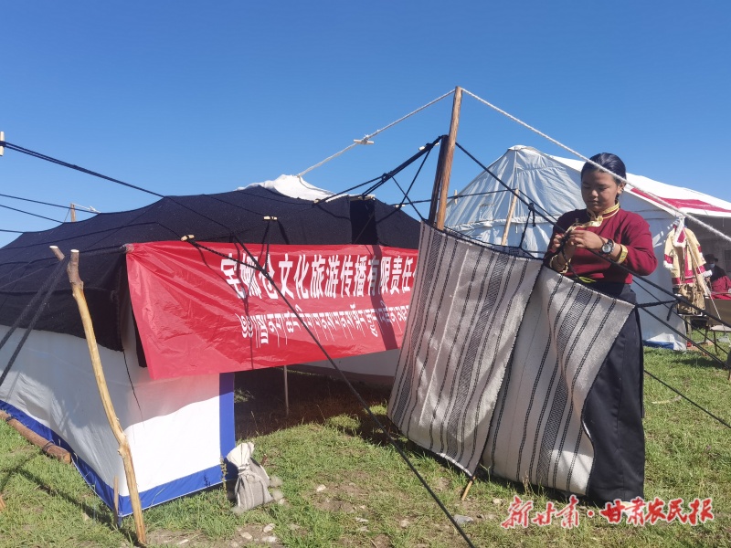 玛曲县欧拉镇的旦增奇珍正蹲在自家的“黑帐篷”前固定帐篷绳索,黑白撞色的帐篷用当地的牦牛毛和羊毛编织而成,看起来时尚又耐用。每根毛需经过浸泡、染色、编织三道工序,6个工人耗时半个月才能织出一顶这样的帐篷。
