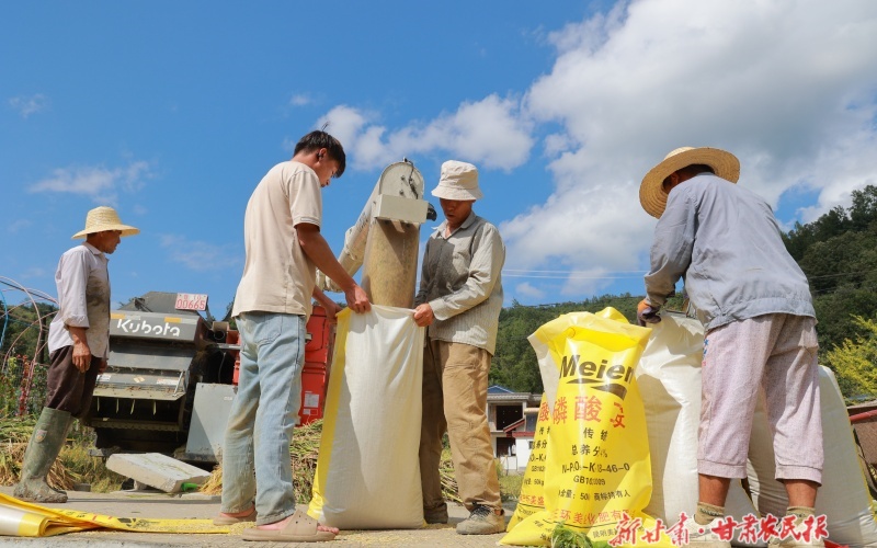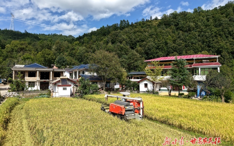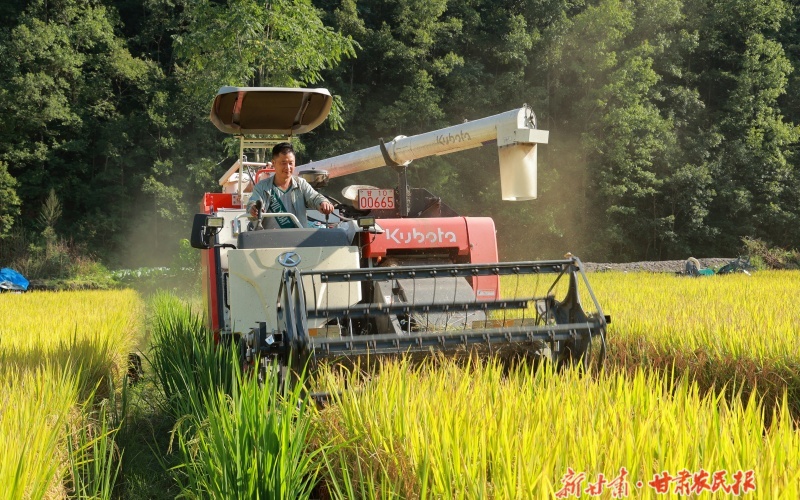 眼下,康县大南峪、阳坝镇、云台等乡镇的高山水稻陆续进入成熟收获期,田野上稻浪滚滚,农民们抢抓天气晴好,收割、晾晒水稻,确保粮食颗粒归仓。新甘肃·甘肃农民报通讯员 黄培军摄
