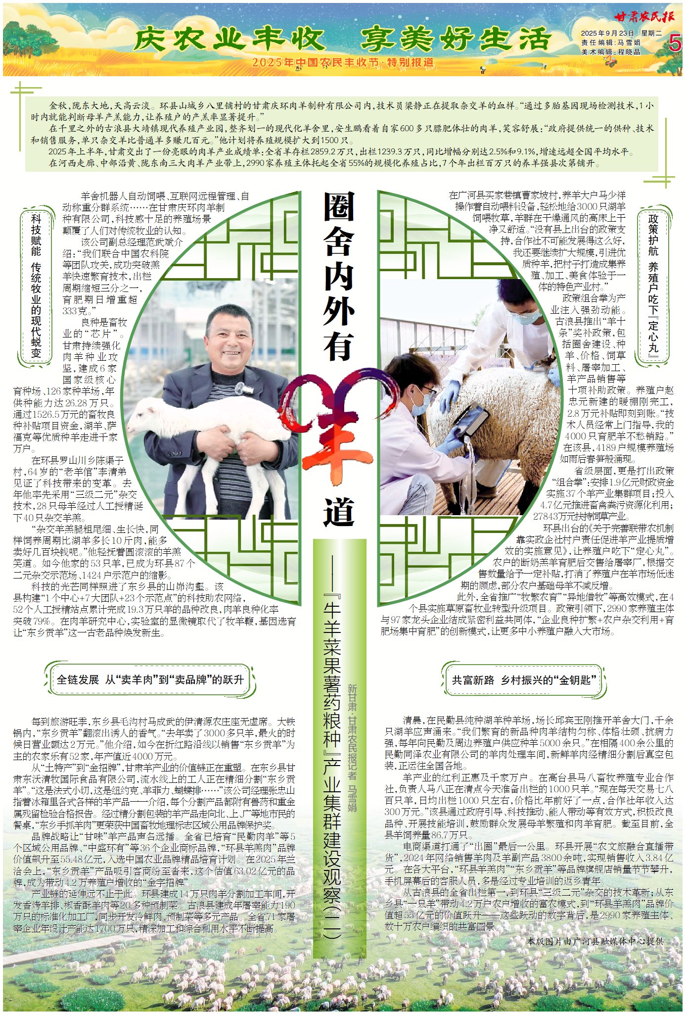 品牌战略让“甘味”羊产品声名远播。全省已培育“民勤肉羊”等5个区域公用品牌、“中盛环有”等36个企业商标品牌,“环县羊羔肉”品牌价值飙升至55.48亿元,入选中国农业品牌精品培育计划。在2025年兰洽会上,“东乡贡羊”产品吸引客商纷至沓来,这个估值63.02亿元的品牌,成为带动4.2万养殖户增收的“金字招牌”。