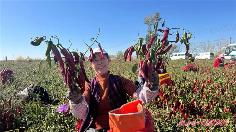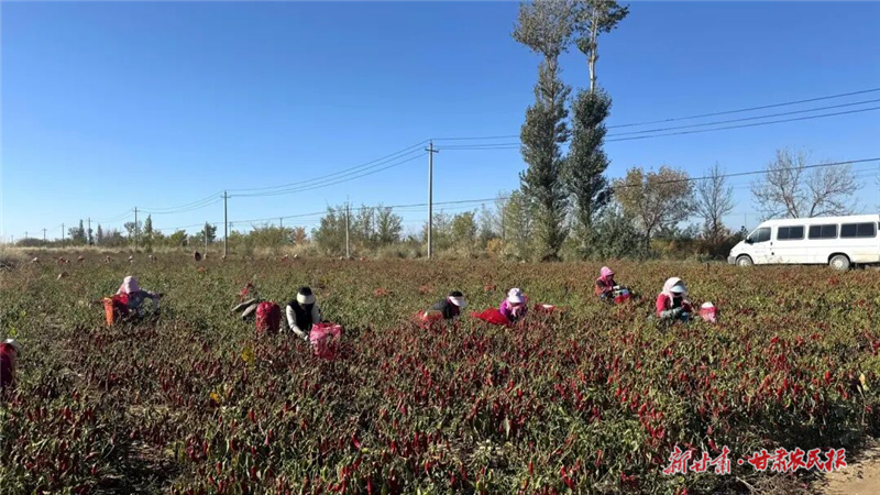 金秋时节,民勤县重兴镇上案村辣椒种植基地一片火红景象。连片的辣椒田里,红彤彤的辣椒挂满枝头,村民们穿梭田间,采摘、装袋、搬运,欢声笑语中满是丰收喜悦。今年,上案村辣椒迎来产量与品质双丰收,小小辣椒成为村民增收致富“幸福椒”。