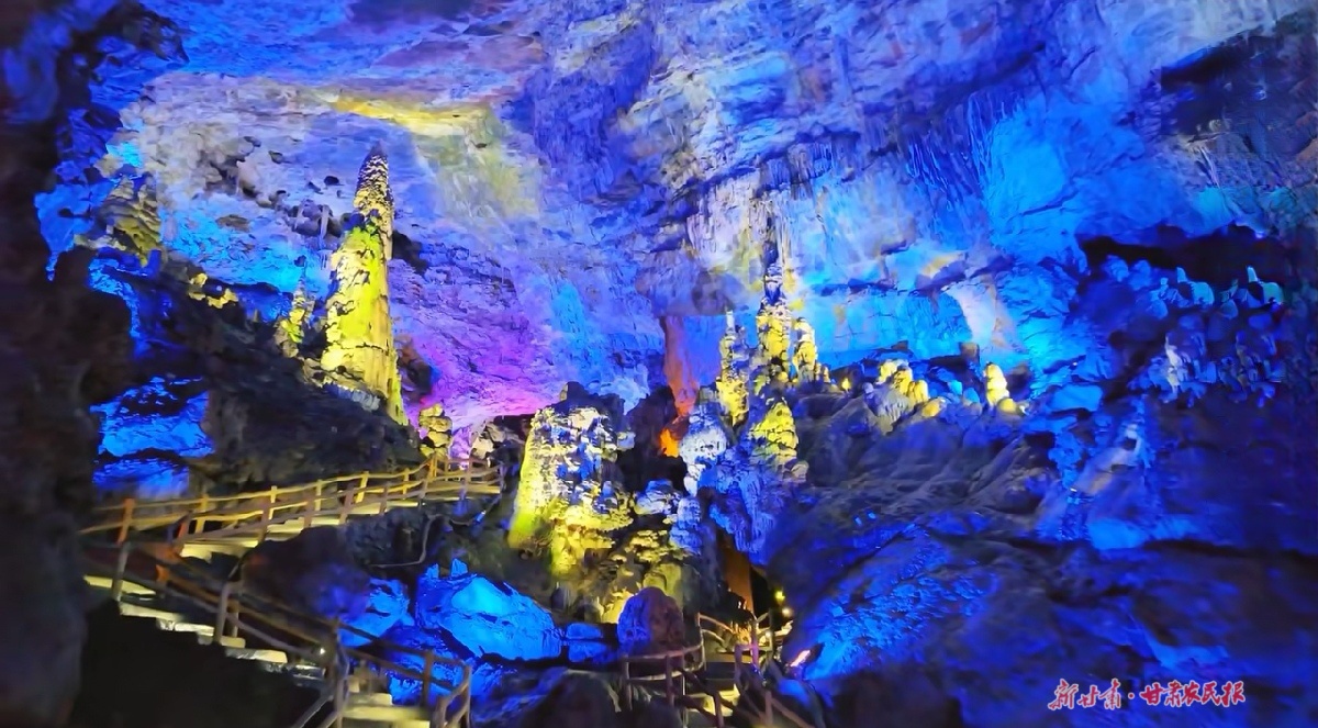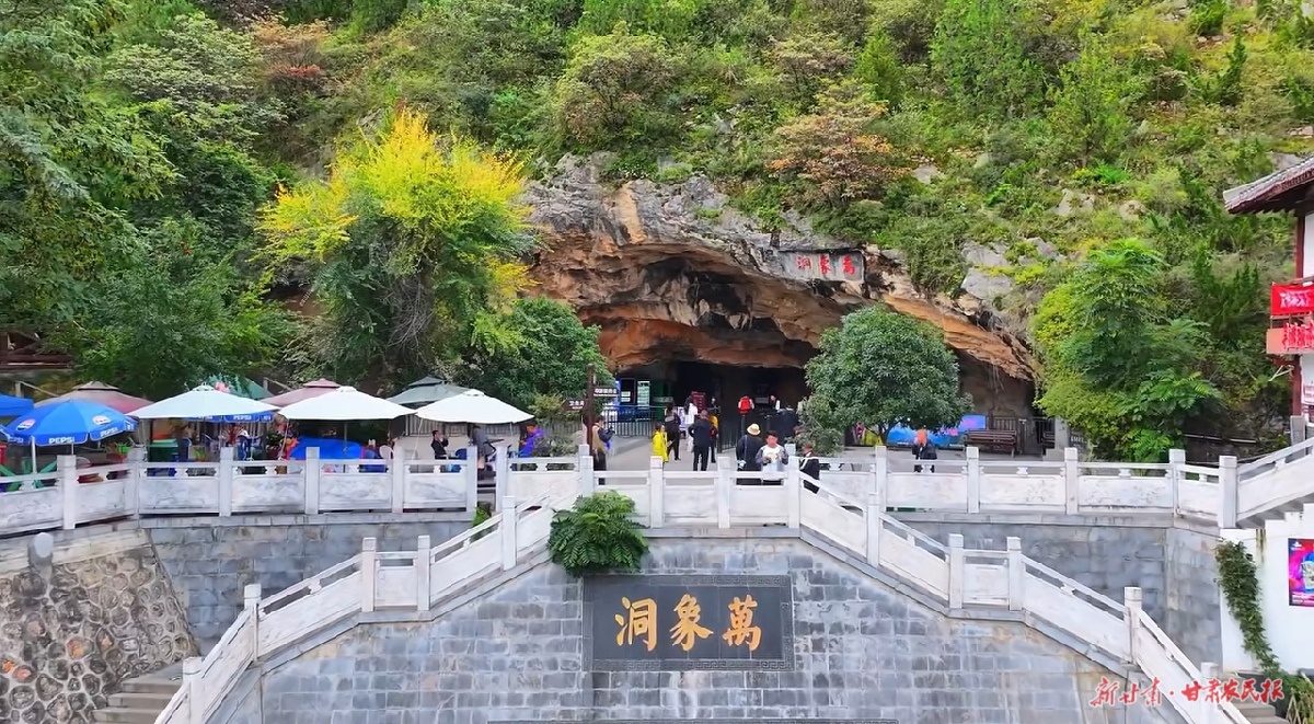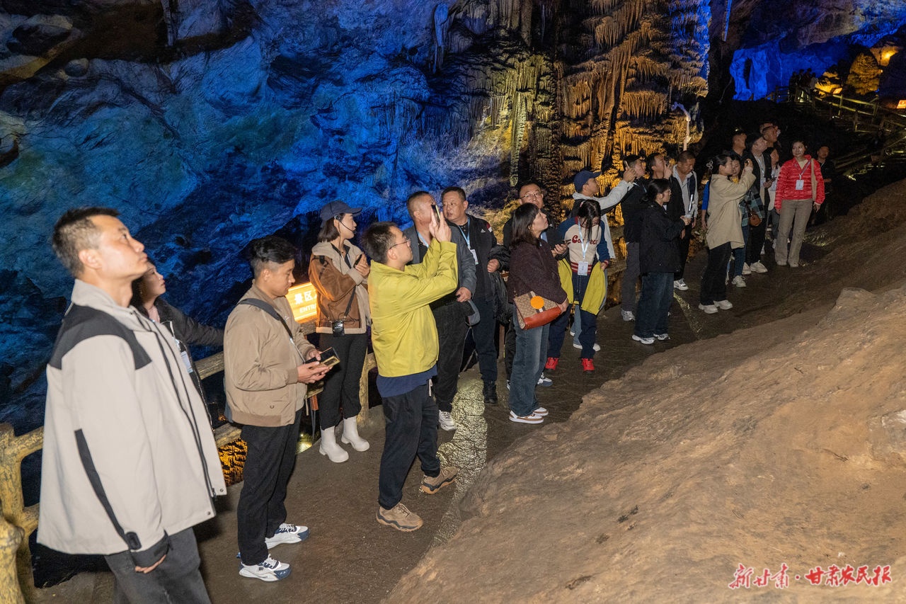 10月19日,伴随着零星的雨滴,“陇原赏秋韵·相约官鹅沟”2025甘肃秋冬季旅游推介大会踩线活动走进陇南万象洞。