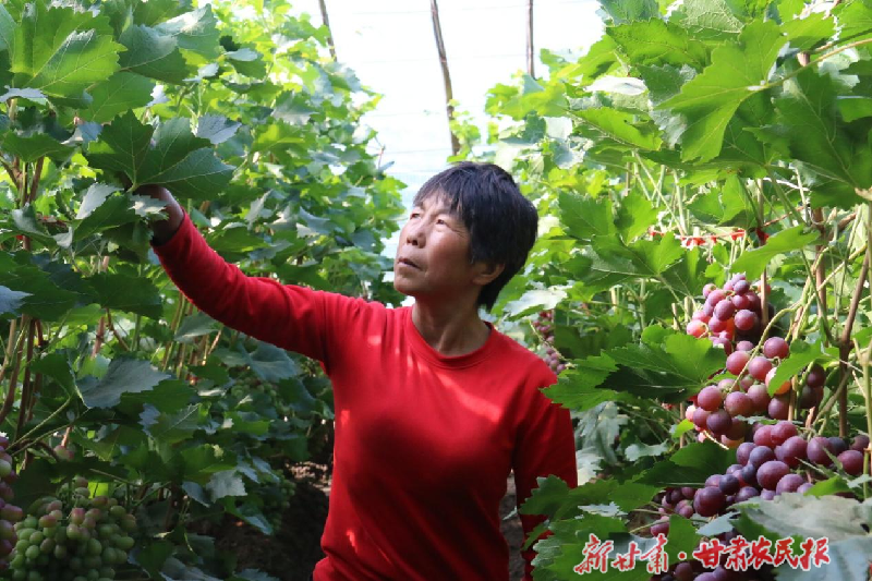 深秋时节,走进凉州区古城镇上河村的红提葡萄种植温室里,一串串饱满的红提葡萄缀满藤枝,再有一个月便可成熟。村民赵水萍是村里最早一批种植红提葡萄的农户之一。这些年种红提葡萄,家里的收入与过去相比,明显有了提升。