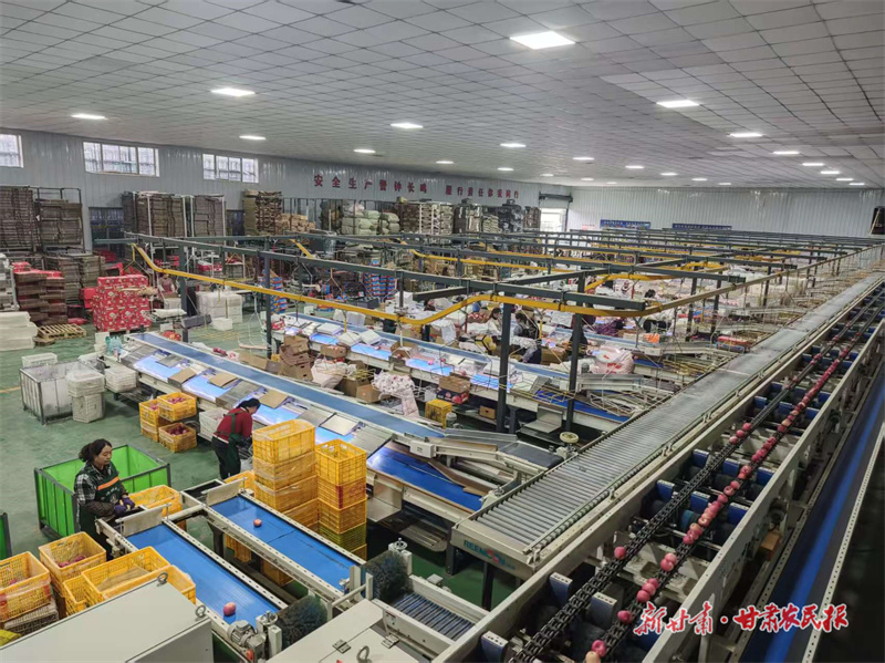 金秋十月,庄浪县百万亩梯田层林尽染,红彤彤的苹果缀满枝头,将层层田垄装点得绚丽多彩。在朱店镇东街村的茂源果品冷链物流产业园内,一条智能化数字双通道分选线正高速运转,一颗颗鲜红的苹果经过精准分级后,即将发往全国各地。