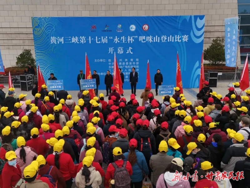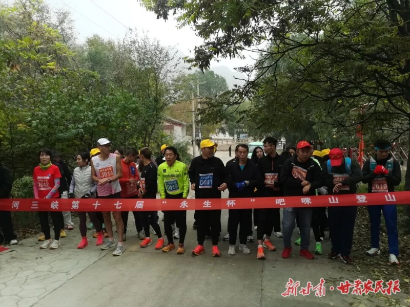 甘肃农民网讯(新甘肃·甘肃农民报记者 马雪娟)10月29日,秋阳正好,黄河三峡的层林尽染成一片斑斓。随着一声清脆的发令枪响,来自临夏、兰州及永靖本地的100余名登山爱好者如离弦之箭,沿着蜿蜒的山路向山顶冲去,拉开了第十七届“永生杯”吧咪山登山比赛的帷幕。
