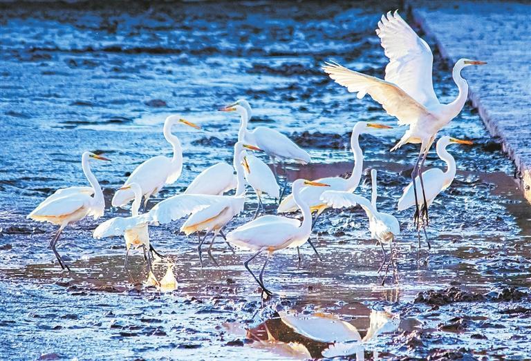 敦煌党河风情线迎来大批白鹭。新甘肃·甘肃日报通讯员 王斌银