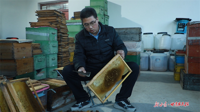 “作为一名养蜂带头人,我要把全会精神真正落实到产业发展中,把养蜂事业做得更有特色、更具规模。”庄浪县王氏蜂业蜜蜂养殖农民专业合作社总经理王彦奇说,蜜蜂采花酿蜜,就是将好生态直接转化为好产品,既保护环境,又助农增收。“我要带领蜂农一起奋斗,把‘甜蜜事业’做得更强,把庄浪养蜂打造成亮丽名片,为乡村振兴贡献力量。”