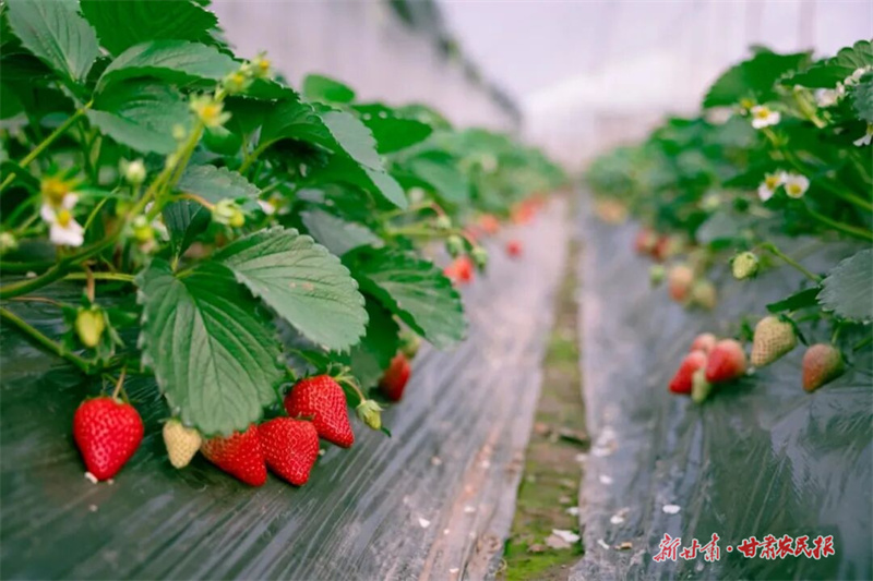 冬日寒风凛冽,华亭市安口镇朱家坡村的大棚里却暖意融融。走进村民朱兴明的草莓种植基地,只见一行行翠绿的草莓苗整齐排列,白花点点,鲜红的果实掩映其中,空气中弥漫着清甜的香气。一批批游客慕名而来,体验采摘的乐趣。