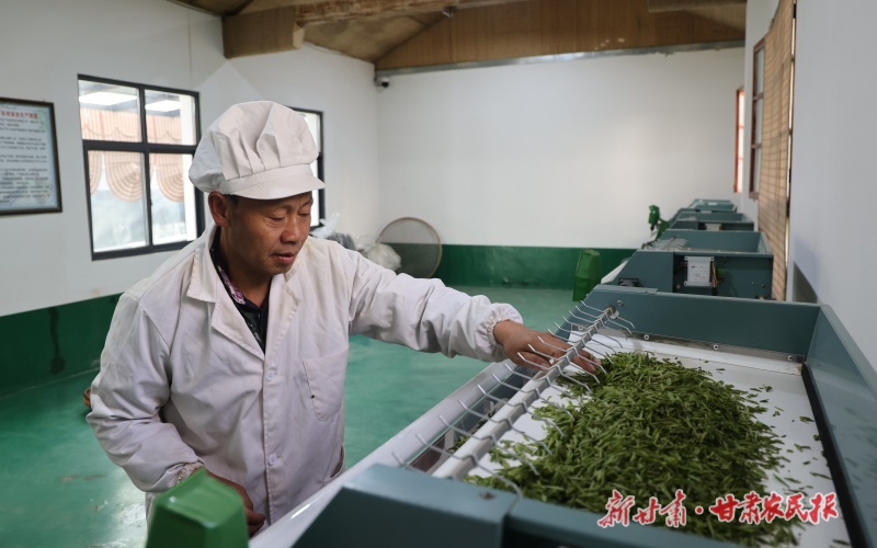 中午时分,采下的鲜叶被迅速送到附近的加工厂。在康县云山茶业有限责任公司的车间里,机器轰鸣,茶香弥漫。杀青、揉捻、理条、烘焙……每一道工序都有讲究。