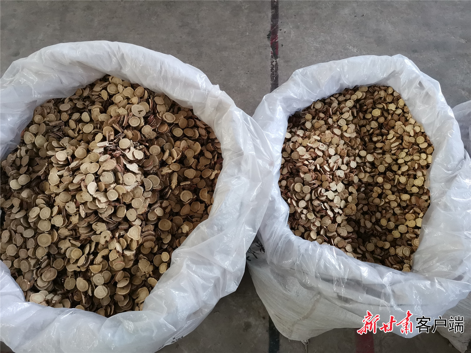 中药材交易市场内切片后售卖的中药材。(本文图片由新甘肃·甘肃日报记者 蔡文正 摄)