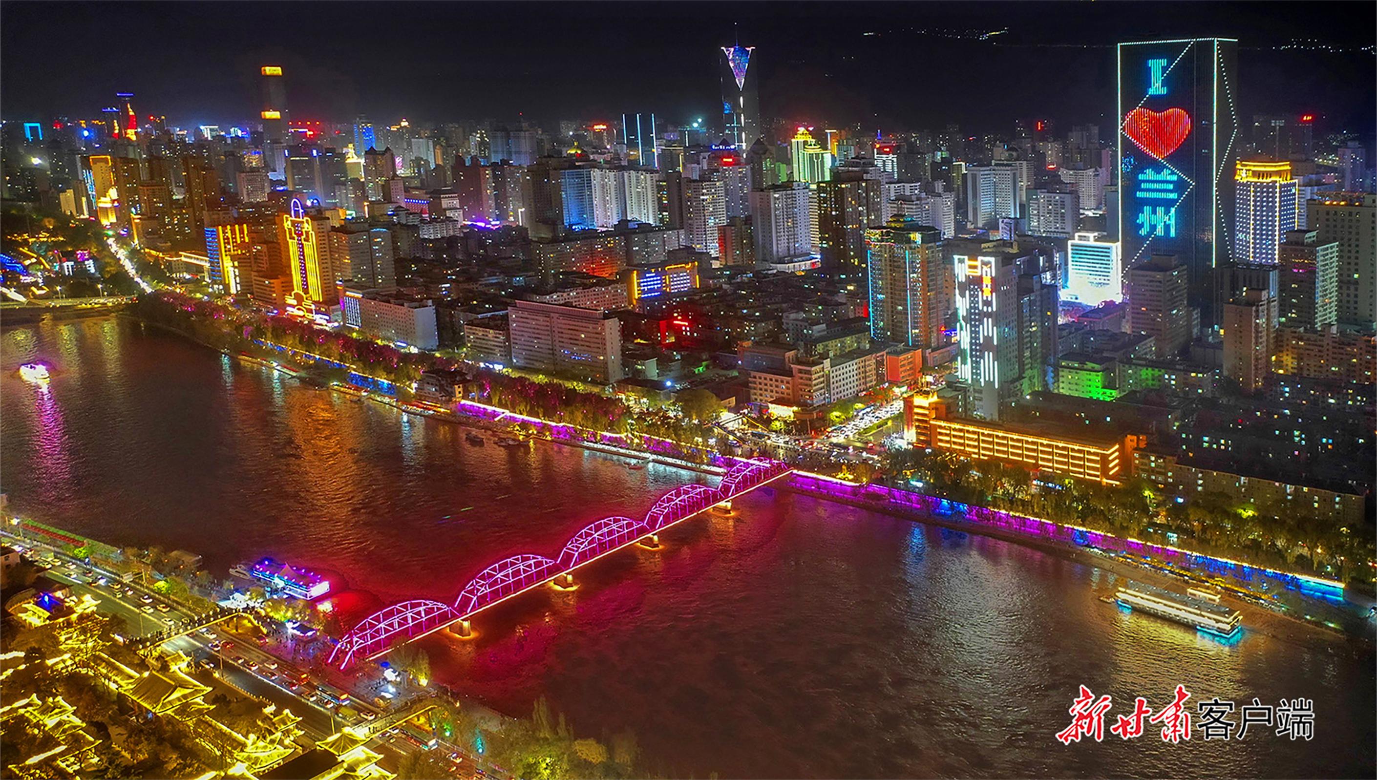 夜幕下,黄河铁桥与城市相映生辉。