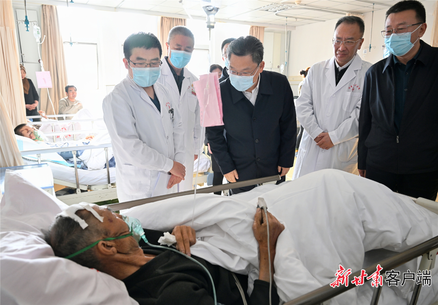 在临夏州人民医院,任振鹤走进重症医学科和重症监护室,看望收治的地震伤员。他强调,要把抢救生命放在首位,高效整合各方医疗资源,逐一排查受伤人员隐匿性伤害,“一人一策”科学制定诊疗方案,对危重伤员要及早转到医疗条件更好的省级医院救治,尽最大努力减少因伤死亡、因伤致残。要细之又细做好伤员和陪护人员的生活保障,保证营养,消除后顾之忧,让他们安心放心舒心地治病休养。要照顾好前来支援的医护人员,心怀感恩,实打实支持,贴心暖心服务,让他们心无旁骛地投入救治工作。