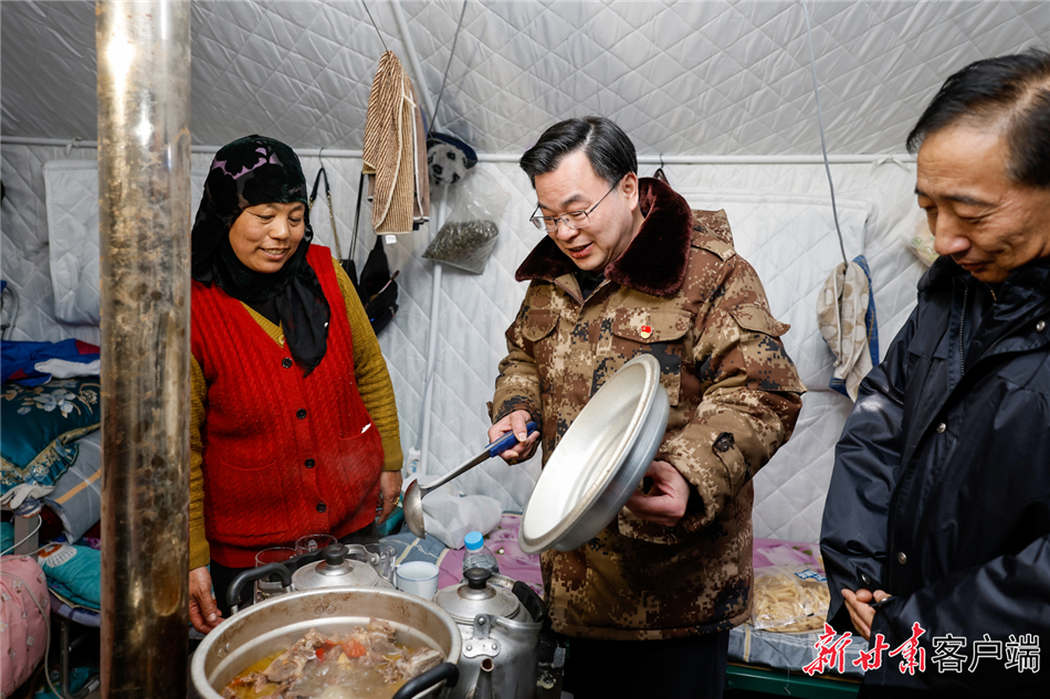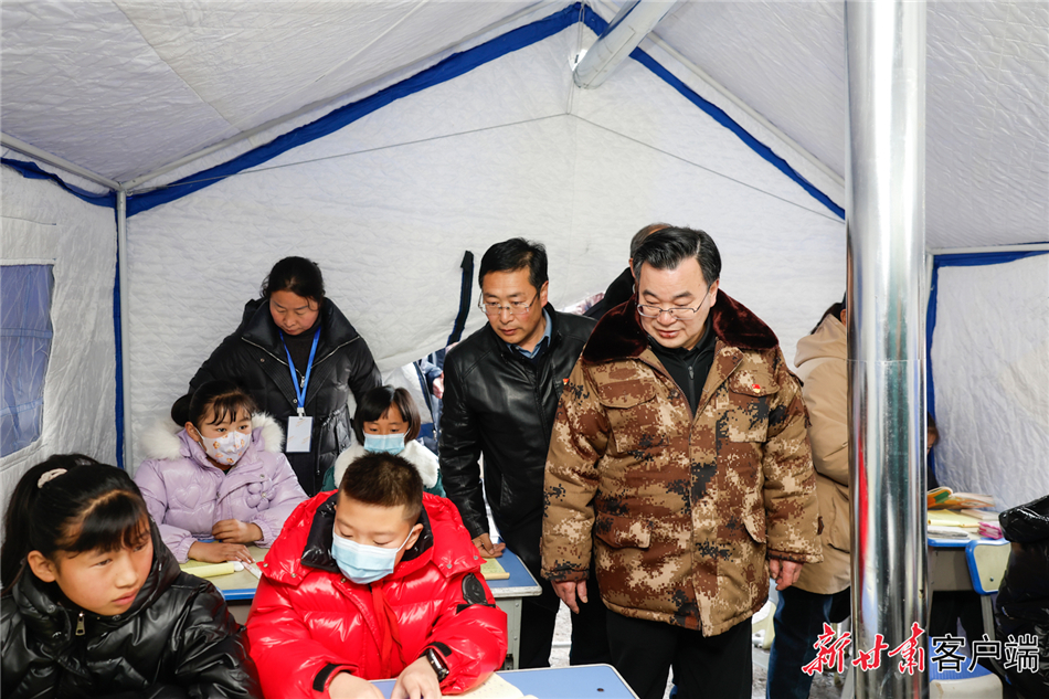 12月26日,省委书记胡昌升深入受灾镇村、集中安置点、学校、商铺和企业,实地检查指导抗震救灾工作、慰问受灾群众。新甘肃·甘肃日报记者 孟捷