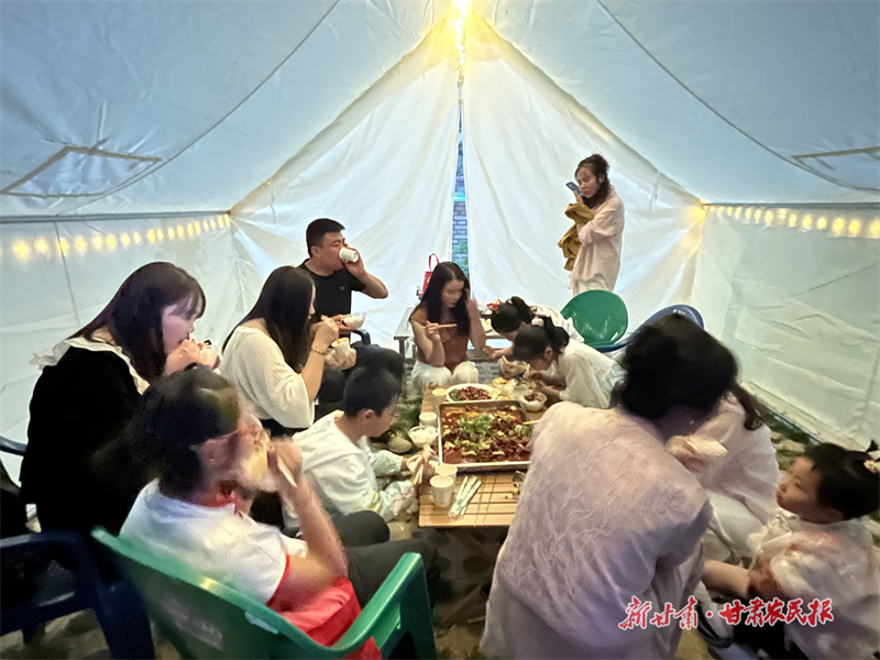 仲夏夜晚,微风轻拂,走进庄浪县朱店镇吴沟村,各类风味小吃、特色烧烤等美食热气腾腾、香气四溢,游客围坐在一起,享受着农家美食;孩子们在各种游乐设施上尽情玩耍;市民和游客在五彩斑斓的世界里,体验乡村烟火灯光秀带来的快乐时光,灯火璀璨的乡村夜空把整个村子变成了热情洋溢的“欢乐谷”,让乡村旅游“夜经济”在温馨浪漫的烟火气里越来越活跃。