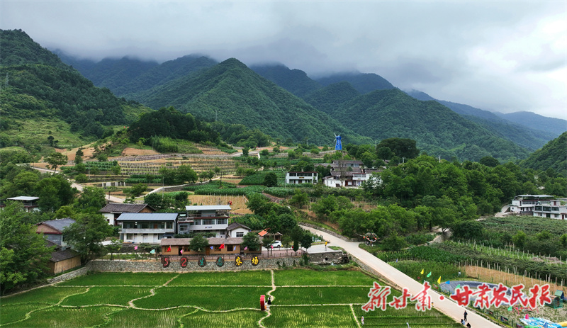 盛夏季节,绿树成荫、四野葱茏,走进康县岸门口镇贾家坝村,迎面扑来的田园气息,令人陶醉。一块块秧苗长势喜人、一排排玉米郁郁葱葱、一架架猕猴桃即将成熟……丰收在望的色彩点缀烟火村庄。