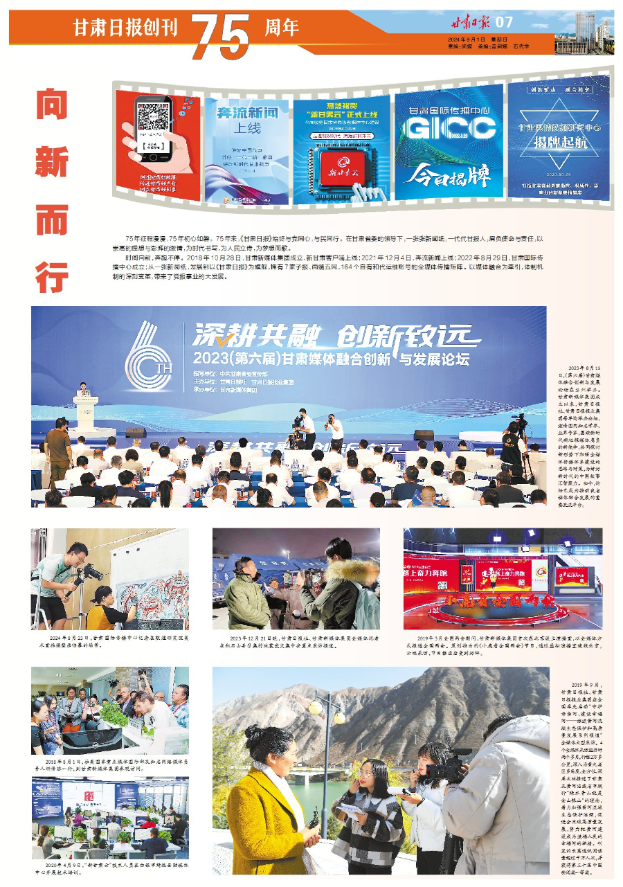 时间向前,奔跑不停。2018年10月28日,甘肃新媒体集团成立、新甘肃客户端上线;2021年12月4日,奔流新闻上线;2022年8月29日,甘肃国际传播中心成立;从一张新闻纸,发展到以《甘肃日报》为旗舰,拥有7家子报、两端五网,164个自有和代运维账号的全媒体传播矩阵。以媒体融合为牵引,体制机制的深刻变革,带来了党报事业的大发展。