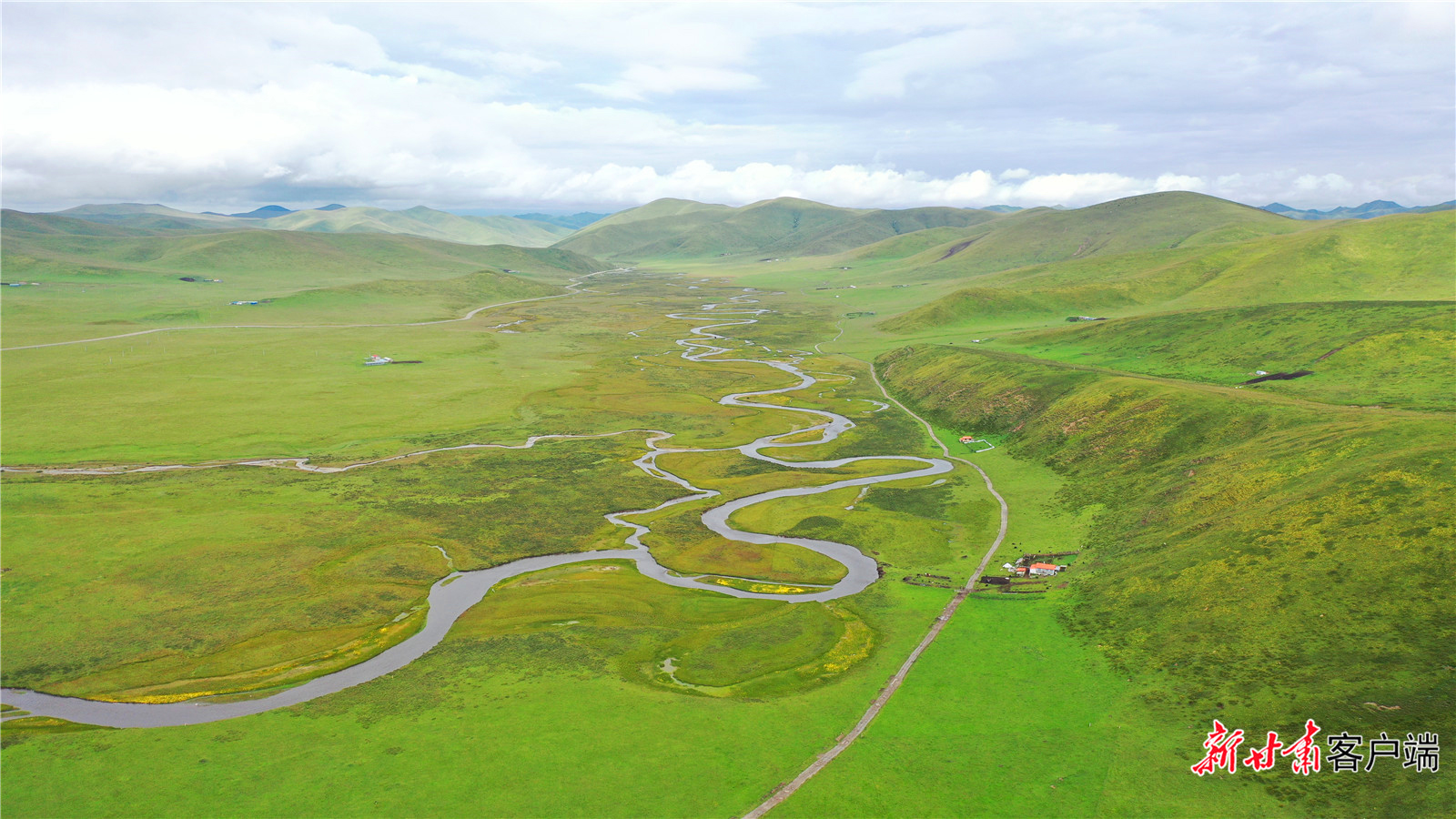一弯碧水润草原。九月的阿万仓,雄浑辽阔。极目远眺,广袤的草原,像一块巨型的绿色地毯铺展开来。湿地平缓,黄河在此迂回,形成溪流、汇为湖泊,星罗棋布,美轮美奂。