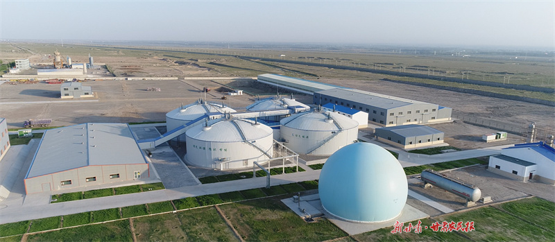 牛羊粪污、秸秆、尾菜等有机废弃物经过“干式+湿式”厌氧发酵,每天吐出2万立方米甲烷含量97%以上的生物天然气,年减排二氧化碳6万吨。