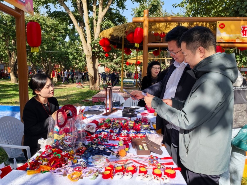 最受瞩目的当属古梨园系统的文化展示区。果农现场演示世代传承的“天把式”高空修剪和“高杆吊枝”等独特农耕技术,千年古梨园“以树定域、以枝定形”的生态智慧令观者惊叹;另一侧,省级乡村工匠名师杜霞、道春霞、沈占伟等,现场展示技艺绝活,精美的临夏砖雕、灵动的庆阳香包、典雅的丝路洮砚、古朴的天水扎染,传统文化的恒久魅力与丰收喜悦交织,织就一幅“农文旅融合”的生动画卷。