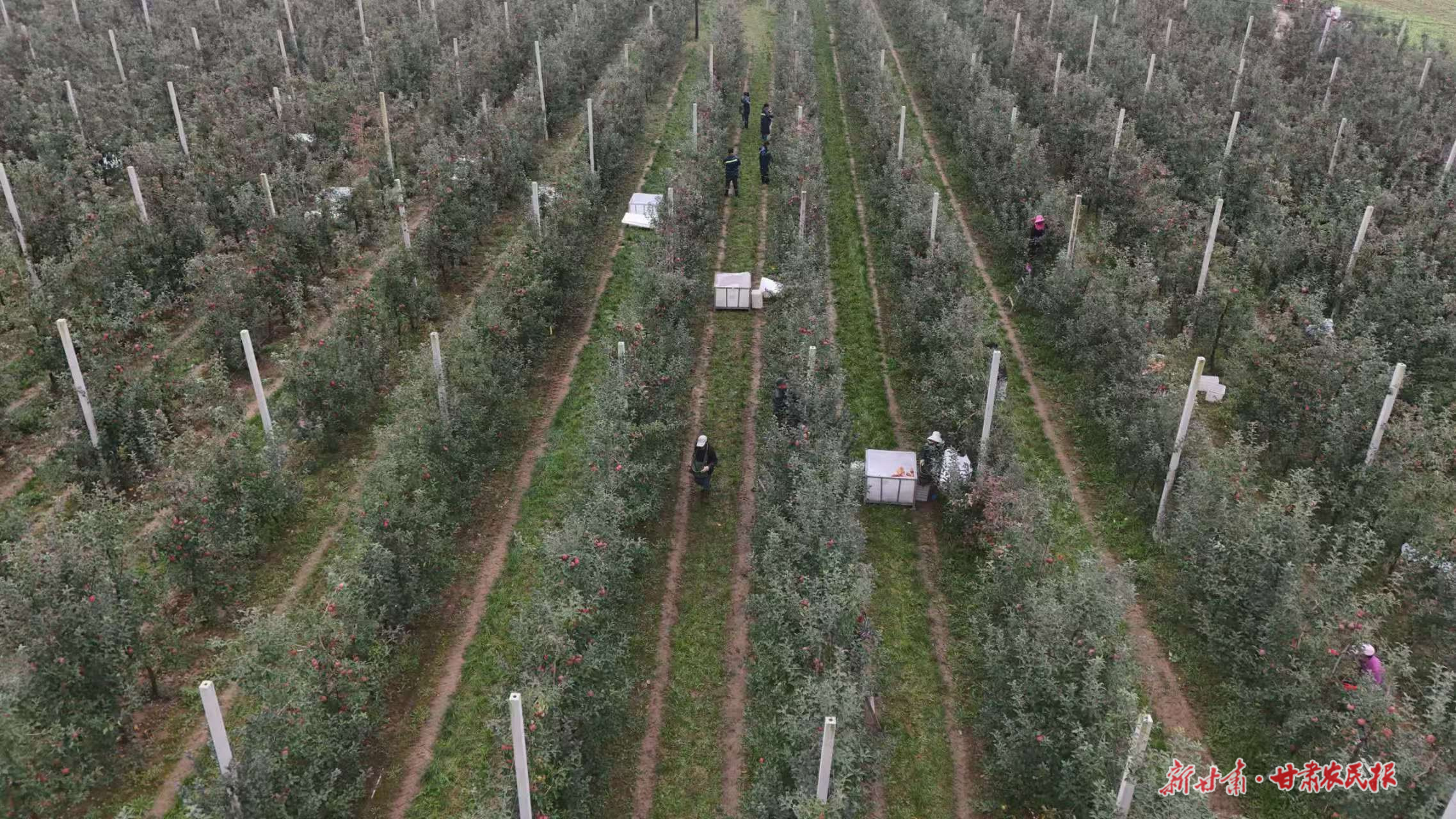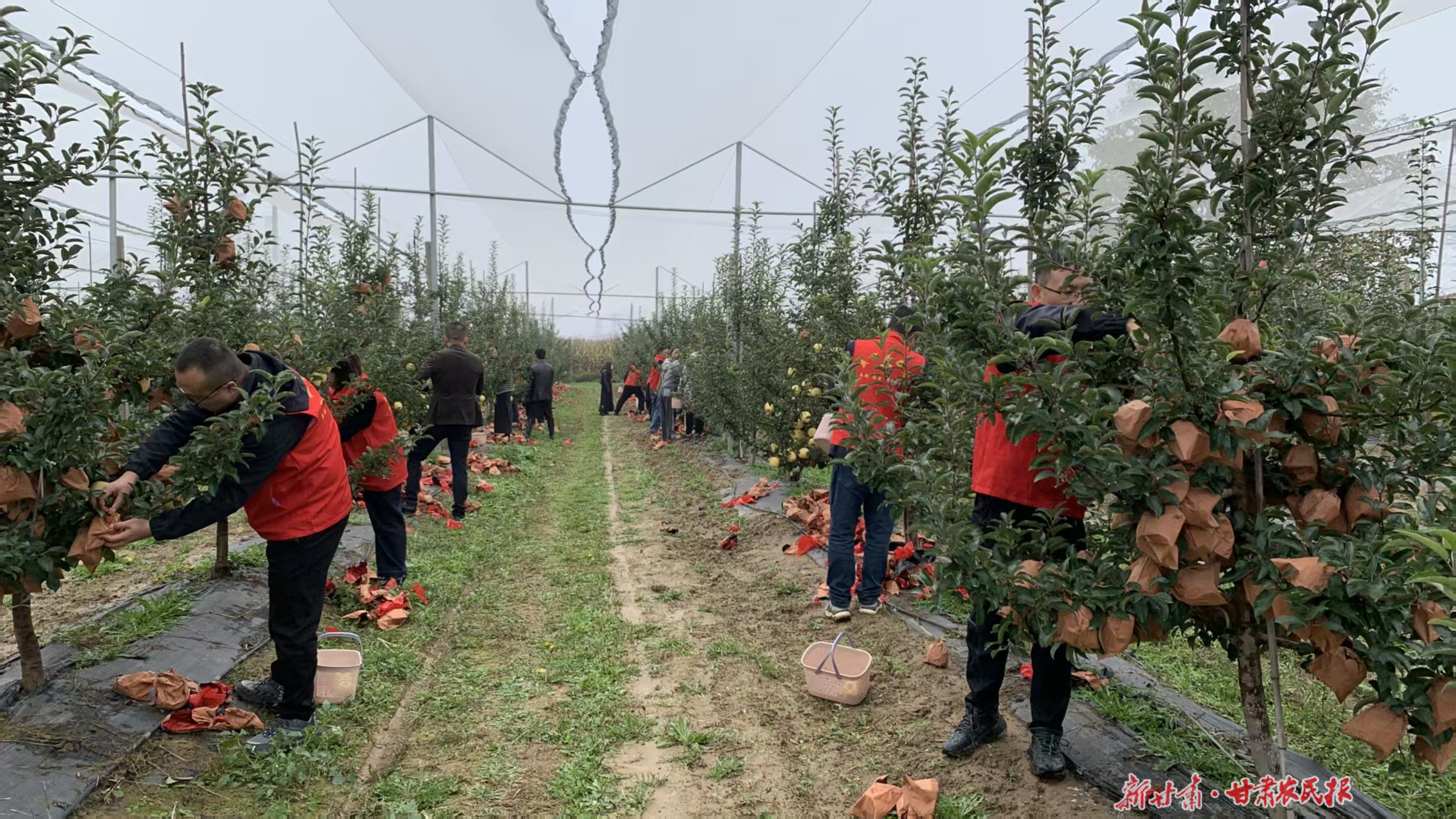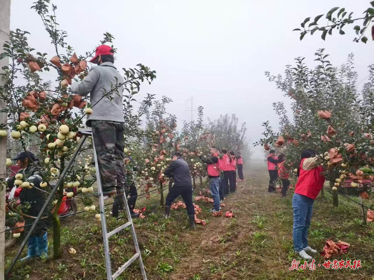宁县干群合力抢收苹果。