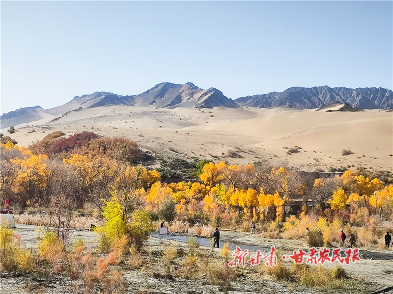 十月,金塔胡杨林进入了最佳观赏期,此时,胡杨将积蓄三季的生命力燃成耀目的柘黄,在蓝天下构筑起一座金色宫殿。虽然国庆长假已经结束,但景区依旧游人如织,人们追随着一个问题的答案而来:是胡杨选择了秋天,还是秋天选择了金黄?