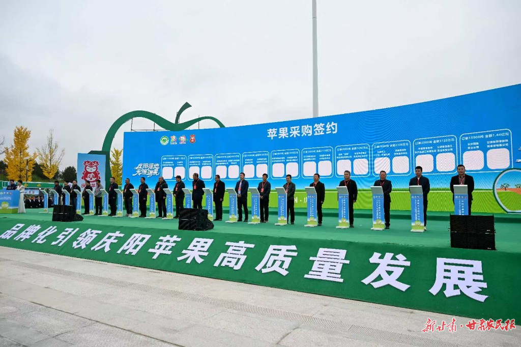 开幕式上,浙江大学CARD中国农业品牌研究中心发布庆阳苹果品牌价值成长报告,西北农林科技大学苹果研究中心发布庆阳新优苹果品质鉴评结果,果企果商代表作了分享发言。中国品牌杂志社与庆阳市果业发展中心签署庆阳国际苹果产业与品牌协作中心合作共建协议,中国联合国采购促进会与甘肃居立生态农业科技有限责任公司签署庆阳苹果国际公共采购服务平台合作共建协议,中国农业科学院果树研究所与甘肃居立苹果苗木繁育有限公司签署国家落叶果树脱毒中心庆阳苹果无病毒苗木专家工作站共建协议。