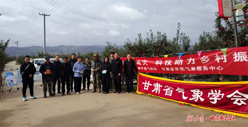 甘肃农民网讯(新甘肃·甘肃农民报记者 何香利 文/图)金秋十月,陇东大地层林尽染,硕果盈枝。正值静宁苹果采收的关键时期,10月12日,一场以“科技助力乡村振兴”为主题的气象科普活动在平凉市静宁县余湾乡苹果种植园拉开帷幕。气象专家开讲“地头课”,推动气象服务直通农业生产一线,助力苹果产业稳产增收。