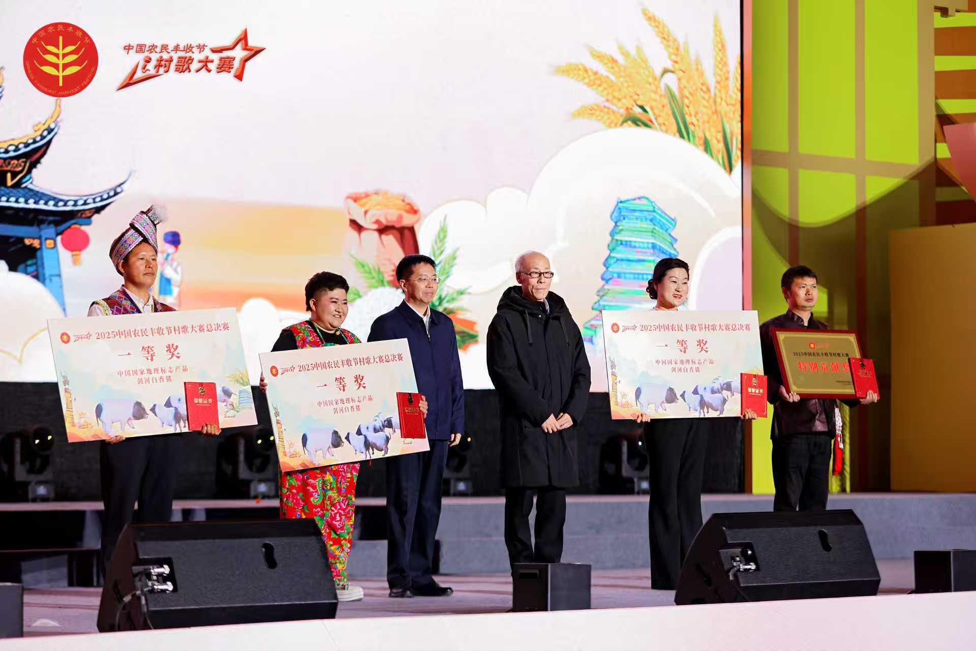 甘肃农民网讯(新甘肃·甘肃农民报记者 马雪娟)10月25日上午,中国农民丰收节村歌大赛总决赛在贵州省剑河县举行,来自北京、河北等14省(自治区、直辖市)的15支正赛队伍、6支副赛队伍同台竞技。经专业评审、媒体评审、大众评审现场综合打分,我省秦韵戏曲公益培训社编排表演的非遗说唱节目《农民的日子美扎了》,凭借浓郁的陇原地域特色与鲜活的乡村生活气息,一举斩获最佳词曲作者奖、全国村歌总决赛一等奖。