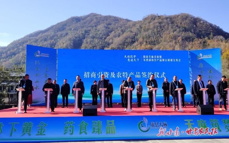 新甘肃客户端讯(新甘肃·甘肃农民报记者 杨万明 文/图)11月18日,以“天麻筑梦·惠通天下”为主题的陇南天麻采收暨东西部协作产品展示展销交易会在康县阳坝镇正式开幕。本次活动旨在进一步发展壮大特色产业,加快推进乡村振兴,深化拓展东西部协作帮扶,全方位推介陇南康县天麻品牌,搭建专家客商交流合作平台,推动天麻产业高质量发展,为区域经济社会发展注入新动能。开幕式邀请了省内外知名专家教授、企业及客商代表100余人参加,行业专家、企业客商及种植户代表齐聚阳坝,共襄产业盛举,共话发展蓝图。