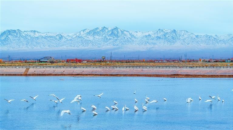 敦煌党河风情线迎来大批白鹭。新甘肃·甘肃日报通讯员 王斌银