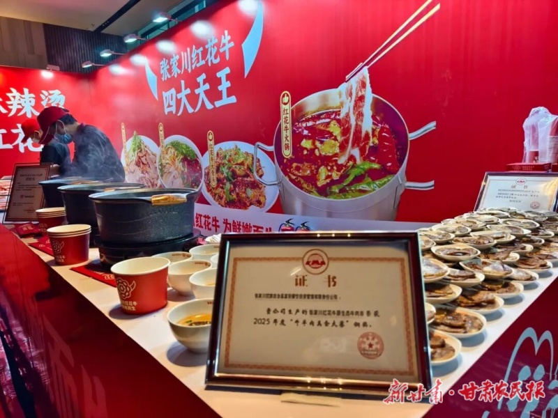 一位来自兰州的餐饮连锁企业负责人对鲜切牛肉和特色调味料赞不绝口。“我不仅看到了高品质的牛肉,更感受到了张家川深厚的饮食文化底蕴。这种‘产品+文化+餐饮’的整体呈现方式非常有吸引力。”他表示将考虑同几家生产企业初步接洽,希望将张家川红花牛引入自己的火锅品牌,并共同开发特色菜单。“我相信,讲述品牌背后的文化故事,能让我们的合作走得更远。”