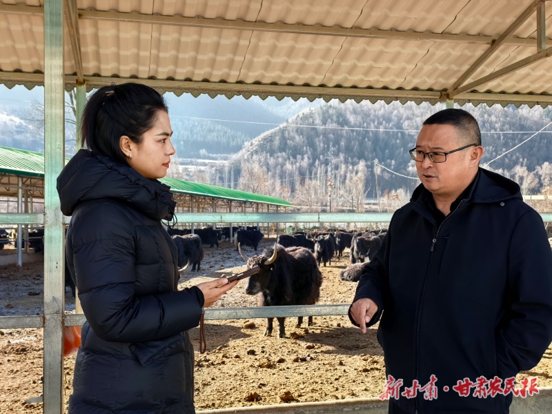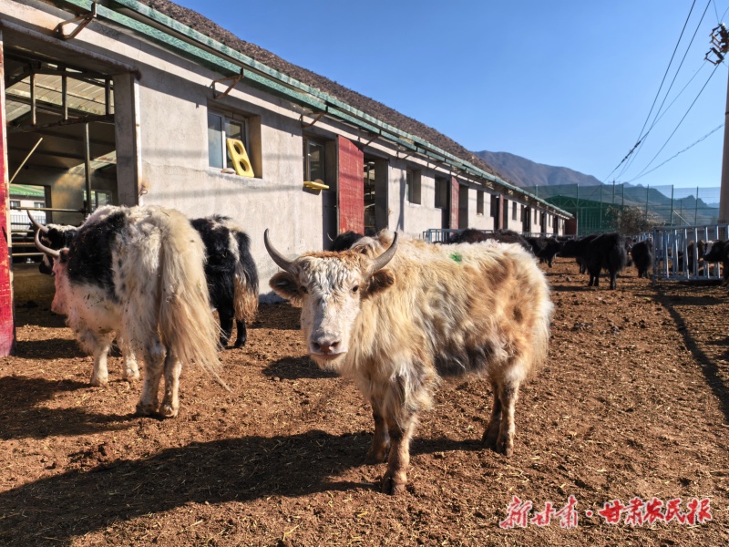 棚外,甘肃省科普教育基地、甘肃省省级农民专业合作社百强社等金色牌子在冬日暖阳下闪闪发光。这里是合作市新瑞丰高原牛羊养殖种植技术开发农民专业合作社,甘南州第一家开展现代化、标准化舍饲牦牛养殖的企业。