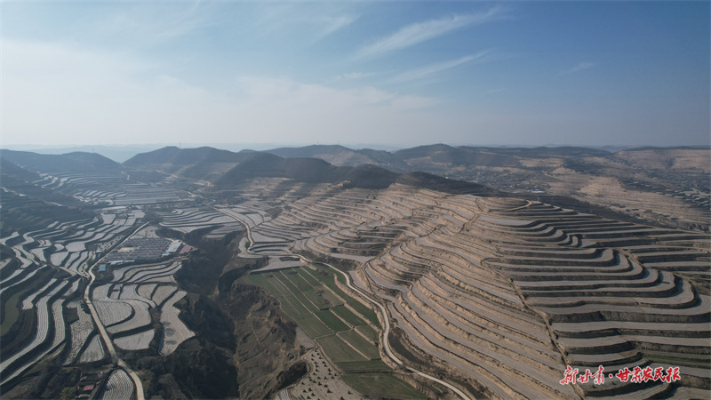 寒冬时节,静宁县界石铺镇的万亩梯田上,银灰色的地膜如鳞似甲,铺展连绵,在冬日阳光下泛起粼粼波光,为苍茫的黄土旱塬平添了几分生机与希望。