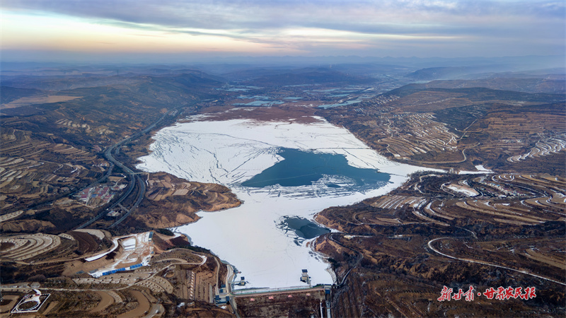 冰封与流淌对峙,洁白与墨色交织。冬日的静宁县悬镜湖,冰水镶嵌,构成一幅静谧的生态画卷。