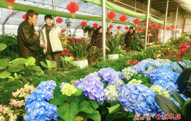 “这盆鸿运当头不错,红红火火!”“杜鹃花开得旺,家里摆一盆,喜庆!”在位于凉州区高坝镇的红太阳花卉房内,经营花店十余年的袁老板忙得不亦乐乎,“随着春节的临近,花市越来越热闹了。今年的花卉选购中,蝴蝶兰、君子兰、蕙兰等寓意吉祥的品种特别受欢迎。”
