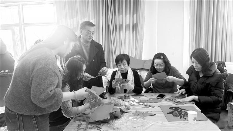 在介子路社区,书法老师现场创作春联和“福”字,广场舞、诗歌朗诵等节目也深受居民欢迎。同时设立的非遗体验区内,国家级非遗项目庆阳剪纸代表性传承人马路现场教学,指导